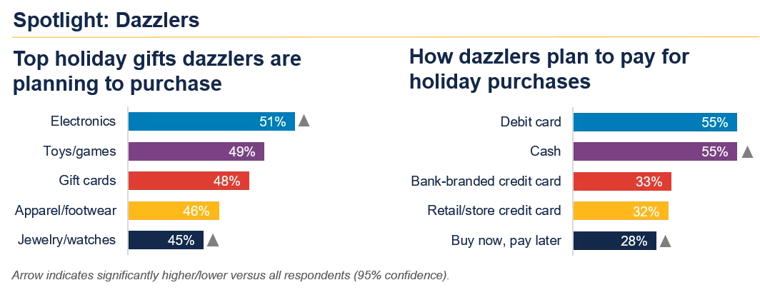 Dazzlers are most likely to be millennials (37%) or Gen Z (29%) versus baby boomers (11%) and Gen X (22%).